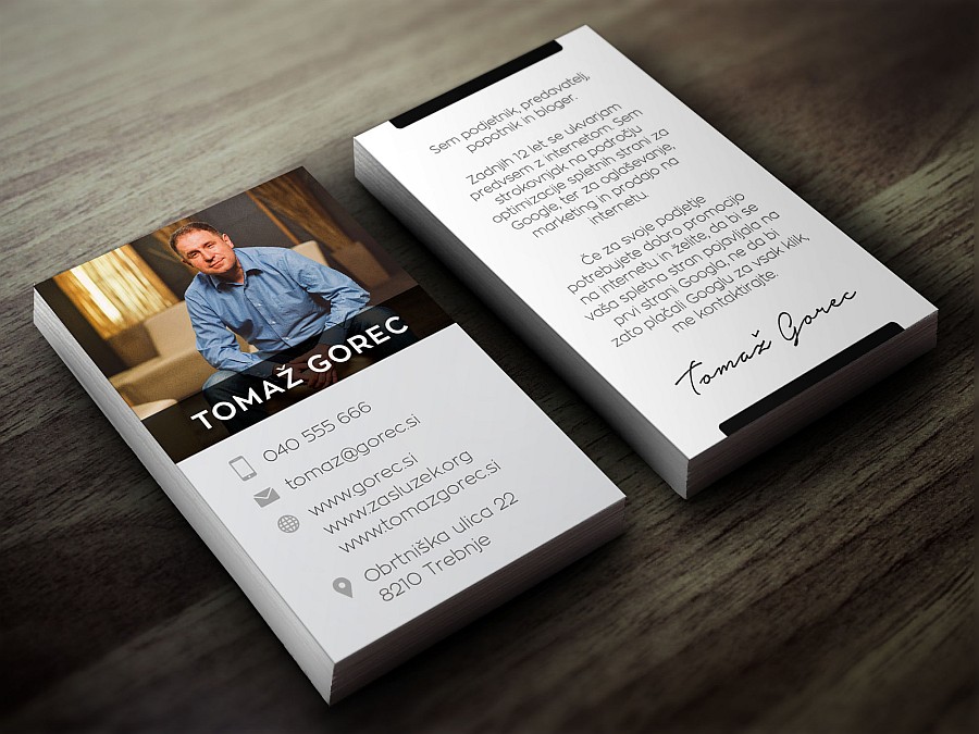 Sem oseba, ki je pri stvareh, kot je izdelava vizitk kar natančen. Namreč v poslovnem svetu je zelo pomebno kakšno vizitko imaš. Če dobro pomislim, še nikoli nisem imel vizitke s katero bi bil vsaj približno zadovoljen.